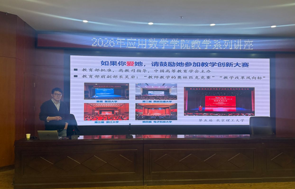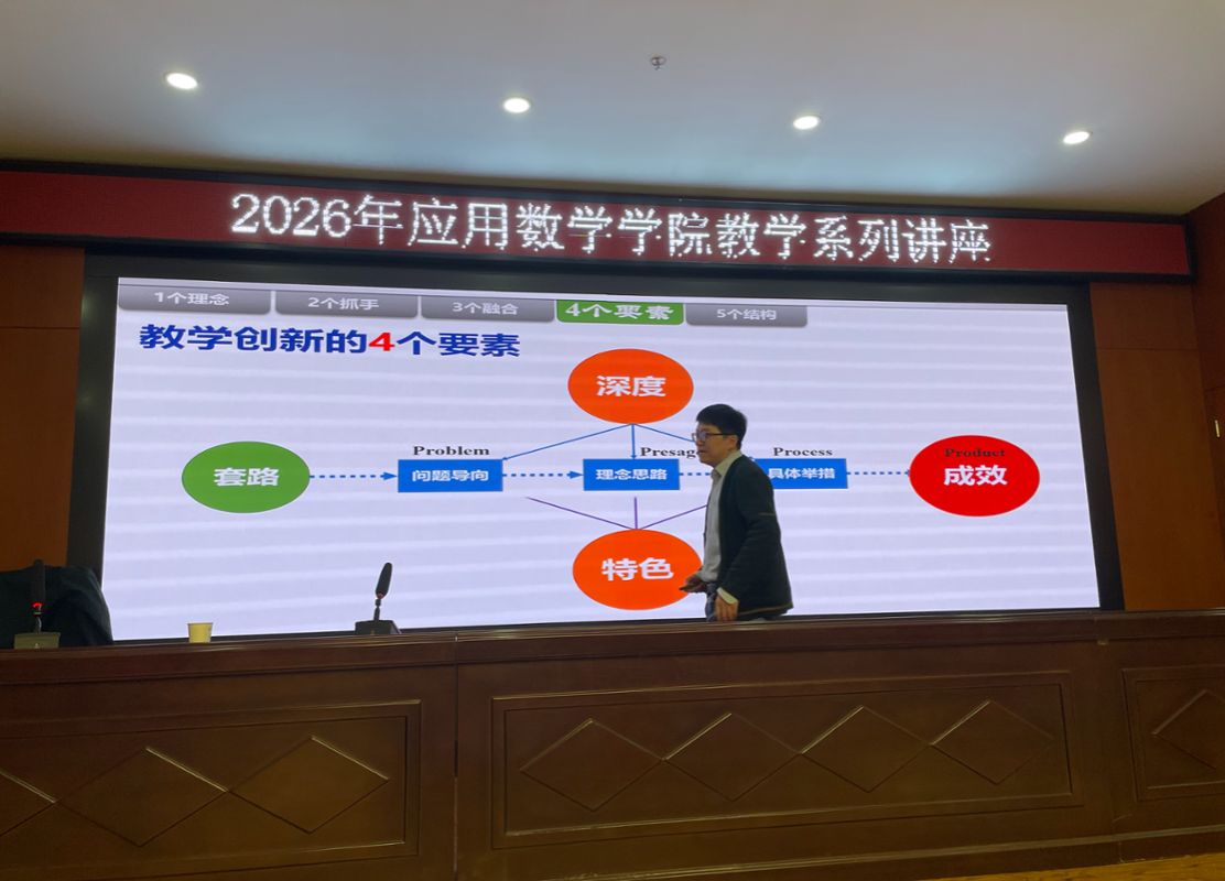 教师作题为《教学创新的底层逻辑与关键词——兼谈AI赋能大学数学教学的思考与实践》的专题培训讲座。本次培训围绕全国高校教师教学创新大赛的备赛理念、教学学术范式、课程思政融入、信息技术赋能等方面展开,内容丰富、案例翔实。